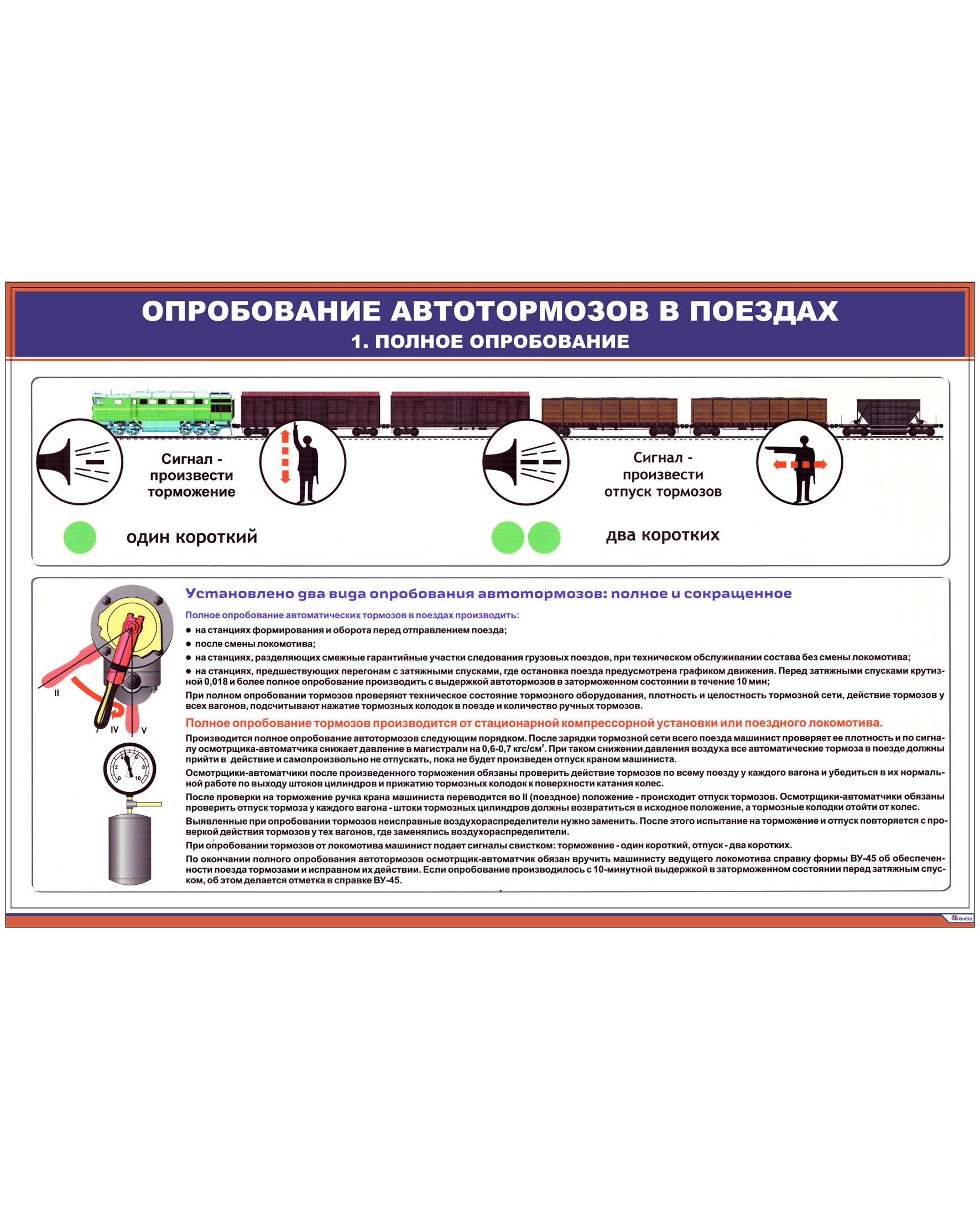 Опробование автотормозов в поездах (комплект из 2 плакатов) (900 х 600 мм, ламинированный, с пластиковым профилем и стальным крючком)