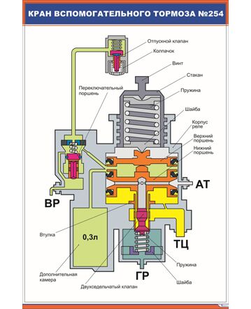 Плакат: Кран вспомогательного тормоза 254 (600 х 900 мм, ламинированный, с пластиковым профилем и крючком)