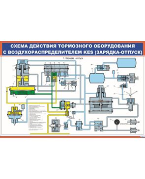 Плакат: Плакат: Схема действия тормозного оборудования с воздухораспределителем KES (зарядка-отпуск) (600 х 900 мм, ламинированный, с пластиковым профилем и стальным крючком)