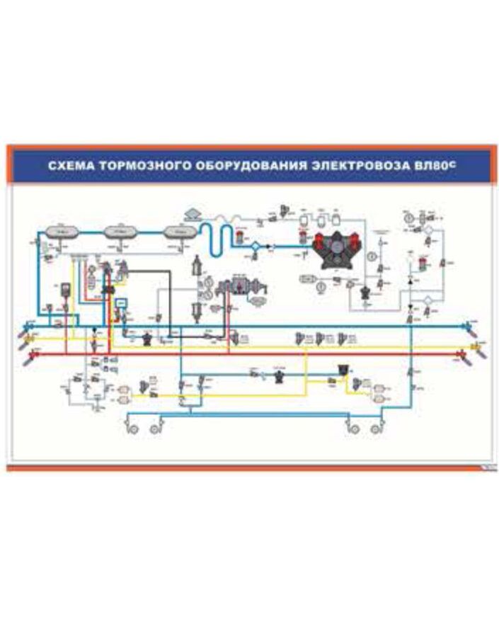Схема тормозного оборудования электровоза ВЛ80с (900 х 600 мм, ламинированный, с пластиковым профилем и стальным крючком)