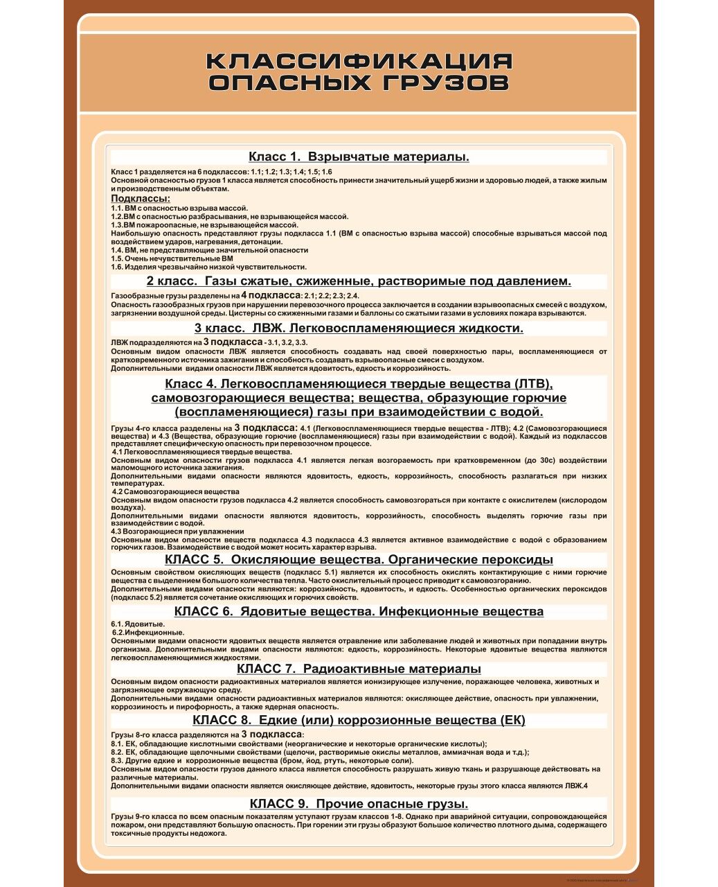 Плакат: Классификация опасных грузов (в соответствии с ГОСТ 19433-88) (600 х 900 мм, ламинированный, с пластиковым профилем и крючком)