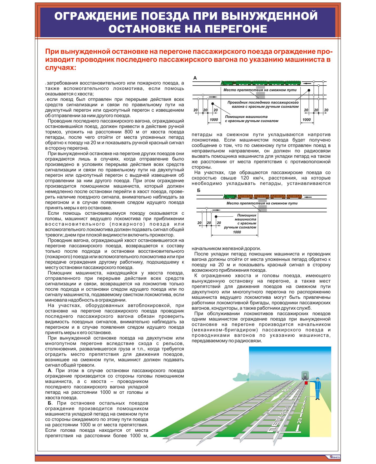 Плакат: Ограждение поезда при вынужденной остановке на перегоне (600 х 900 мм, ламин., с пластиковым профилем и стальным крючком)