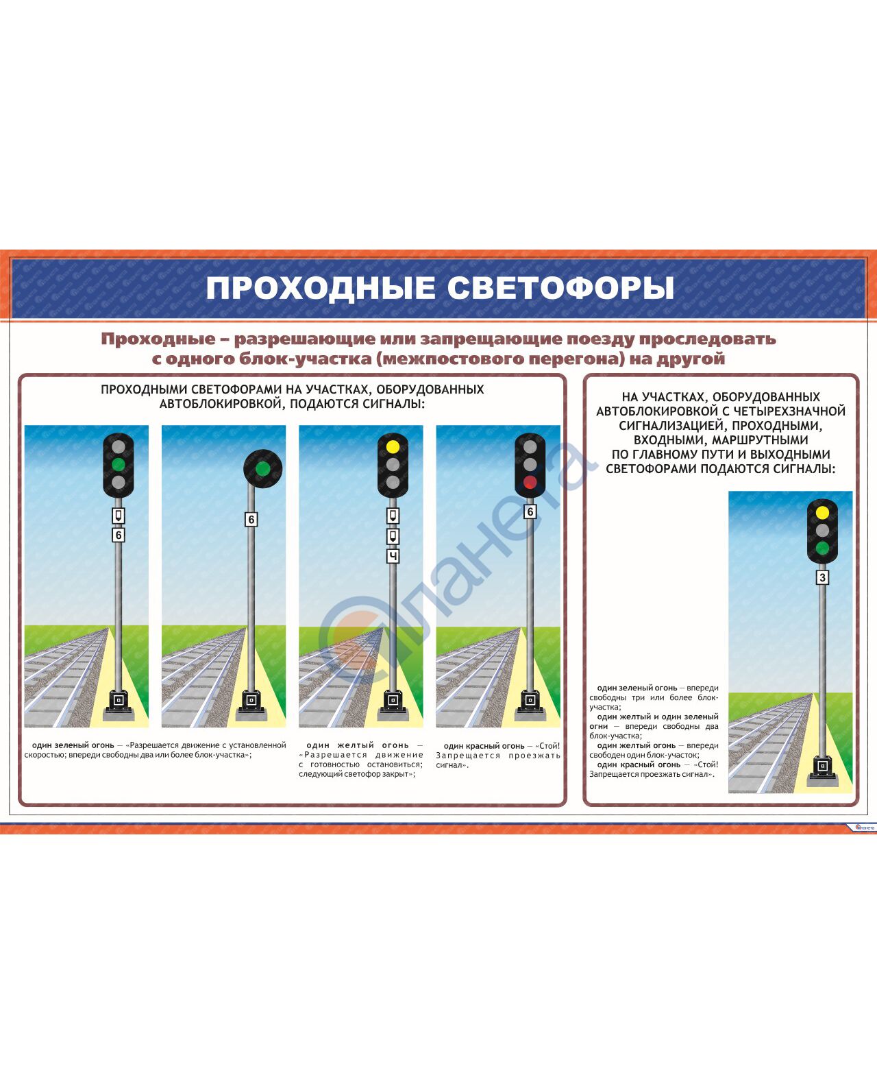 Плакат: Проходные светофоры (900 х 600 мм, ламинированный, с пластиковым профилем и крючком)