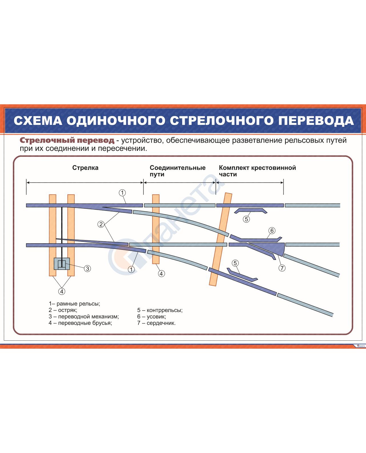 Плакат: Схема одиночного стрелочного перевода (900 х 600 мм, ламинированный, с пластиковым профилем и стальным крючком)
