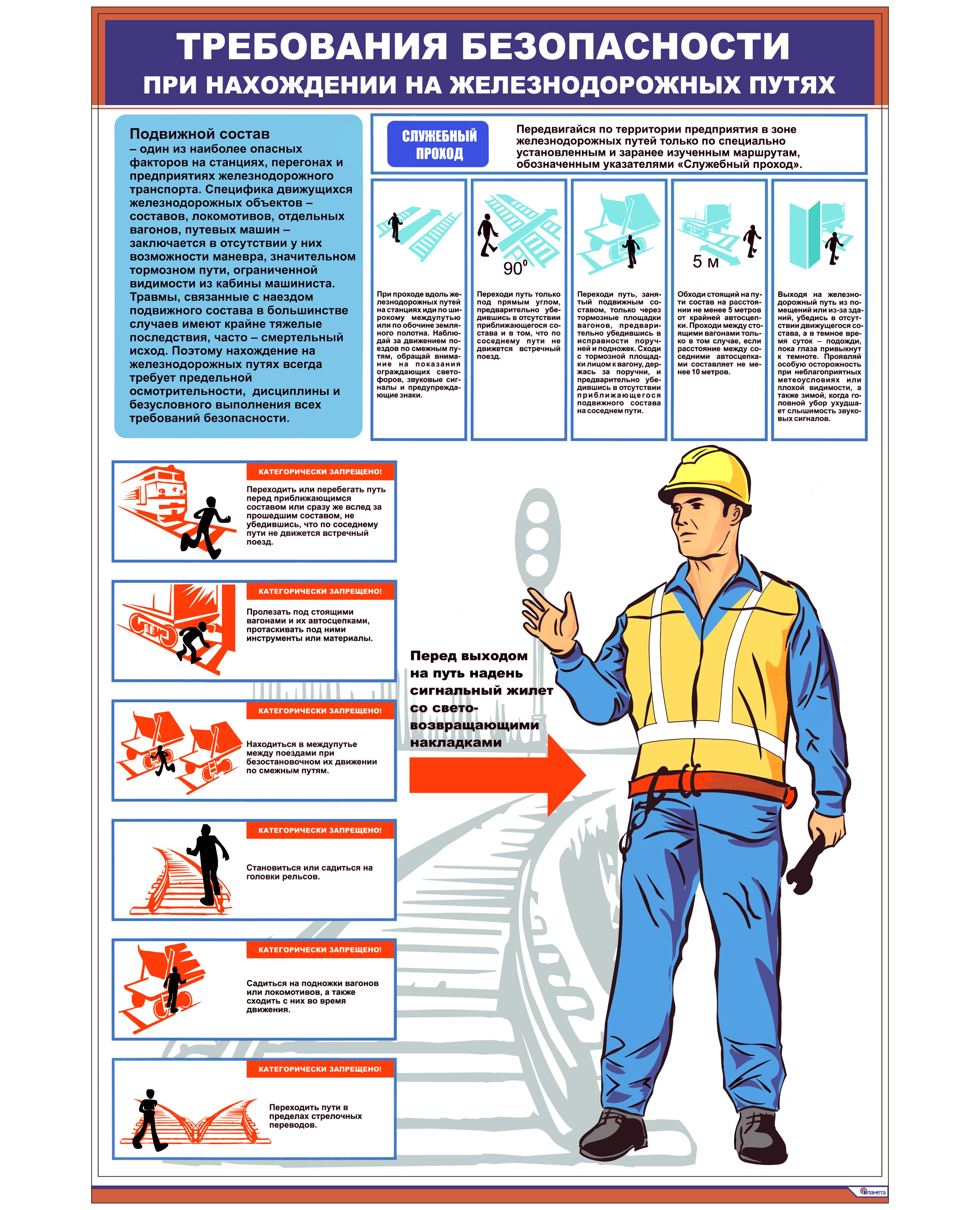 Плакат: Требования безопасности при нахождении на железнодорожных путях (600 х 900 мм, ламинированный, с пластиковым профилем и стальным крючком)