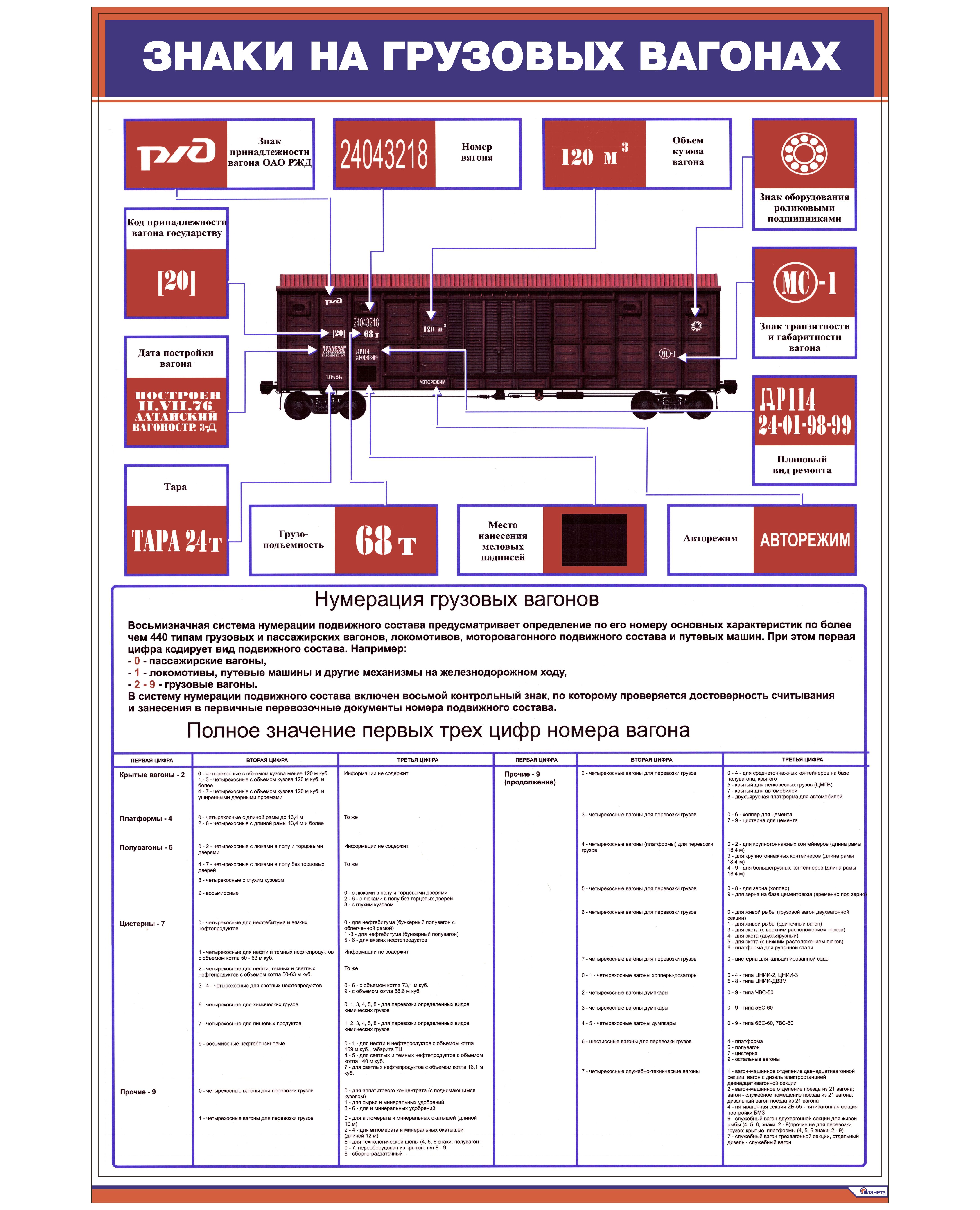 Плакат: Знаки на грузовых вагонах (600 х 900 мм, ламинированный, с пластиковым профилем и стальным крючком)
