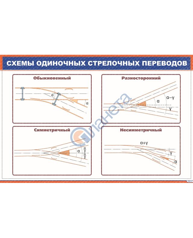 Схемы одиночных стрелочных переводов (900 х 600 мм, ламинированный, с пластиковым профилем и стальным крючком)