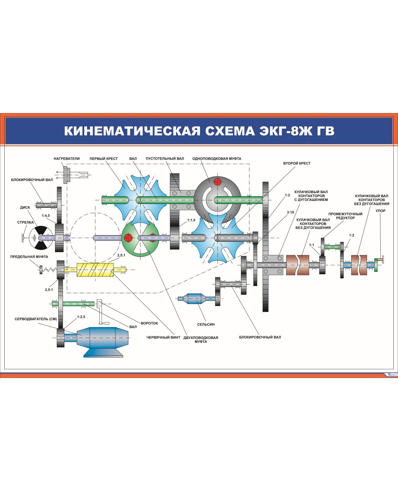 Кинематическая схема ЭКГ-8Ж ГВ (900 х 600 мм, ламинированный, с пластиковым профилем и стальным крючком)