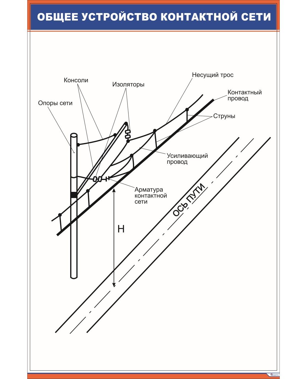 Общее устройство контактной сети (600 х 900 мм, ламинированный, с пластиковым профилем и стальным крючком)