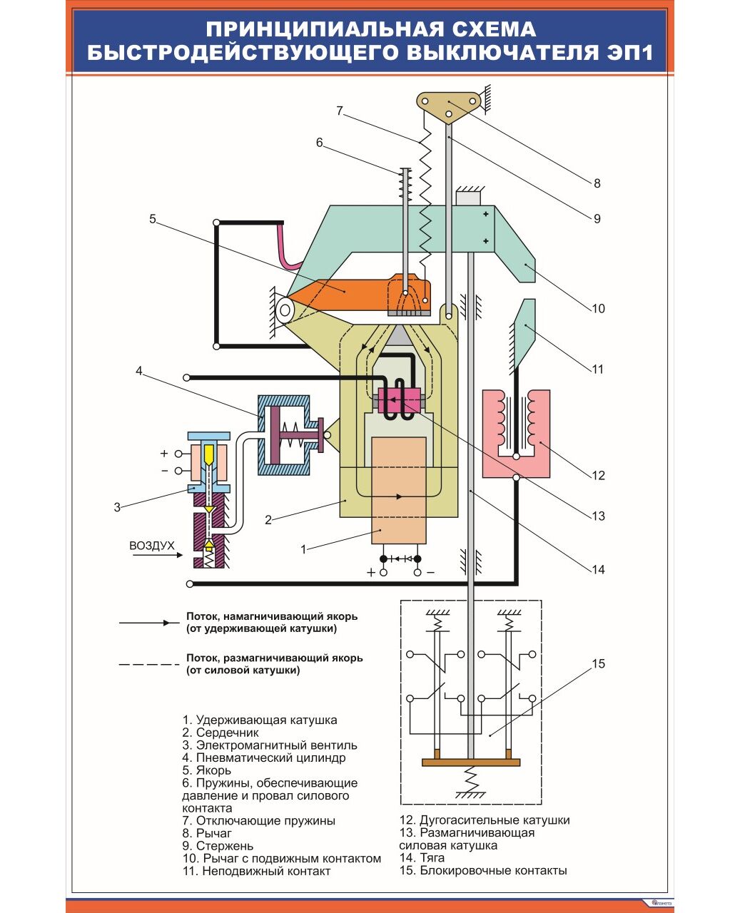 Принципиальная схема быстродействующего выключателя ЭП1 (600 х 900 мм, ламинированный, с пластиковым профилем и стальным крючком)
