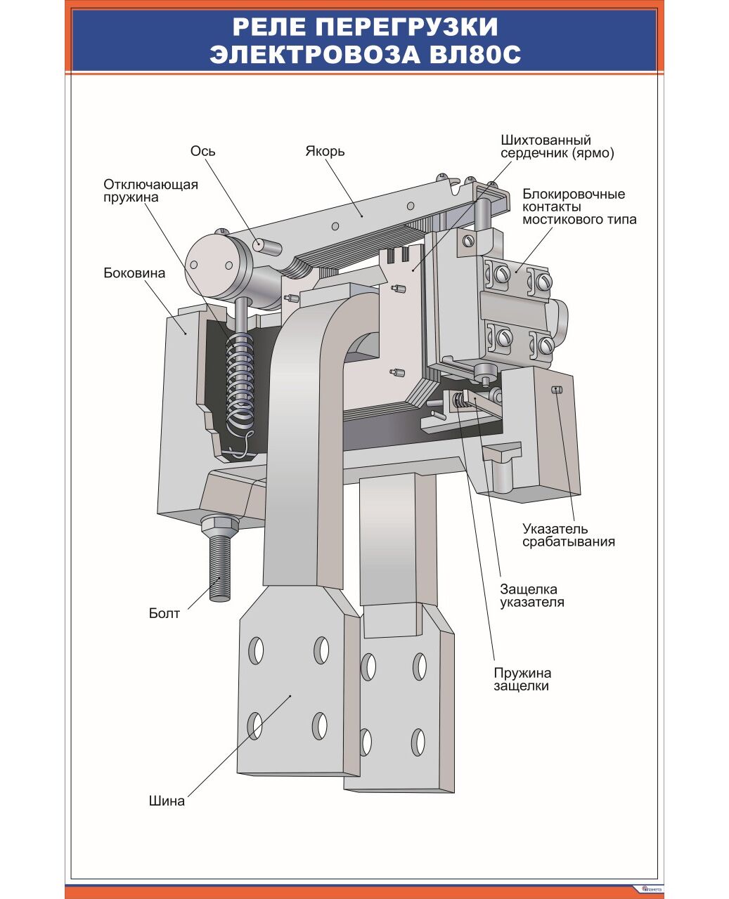 Реле перегрузки электровоза ВЛ80с (600 х 900 мм, ламинированный, с пластиковым профилем и стальным крючком)