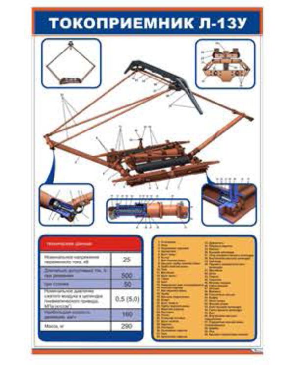 Плакат. Токоприемник Л-13У (600 х 900 мм, ламинированный, с пластиковым профилем и стальным крючком)