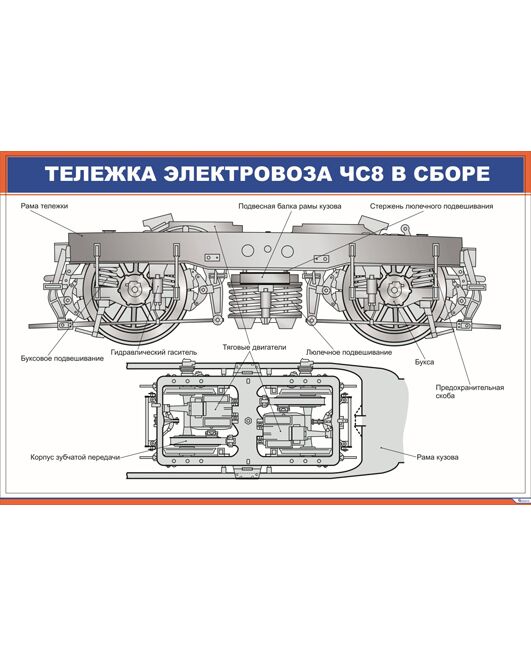 Плакат: Тележка электровоза ЧС8 в сборе (900 х 600 мм, ламинированный, с пластиковым профилем и стальным крючком)