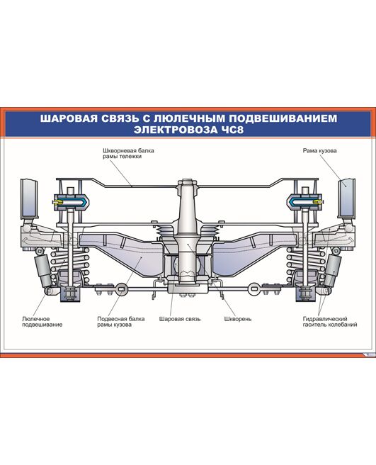 Шаровая связь с люлечным подвешиванием электровоза ЧС8 (900 х 600 мм, ламинированный, с пластиковым профилем и стальным крючком)