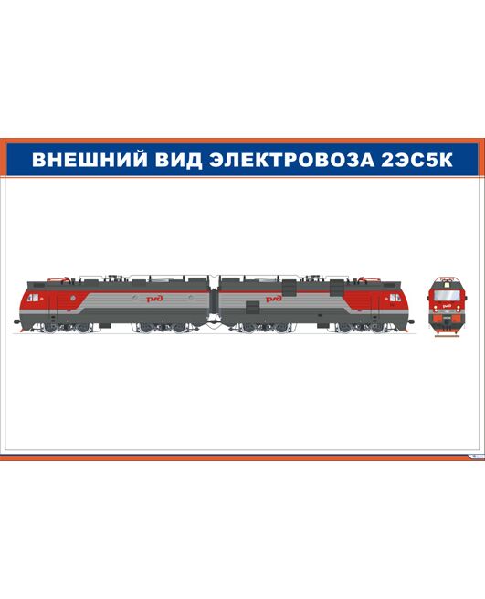 Внешний вид электровоза 2ЭС5К (900 х 600 мм, ламинированный, с пластиковым профилем и стальным крючком)