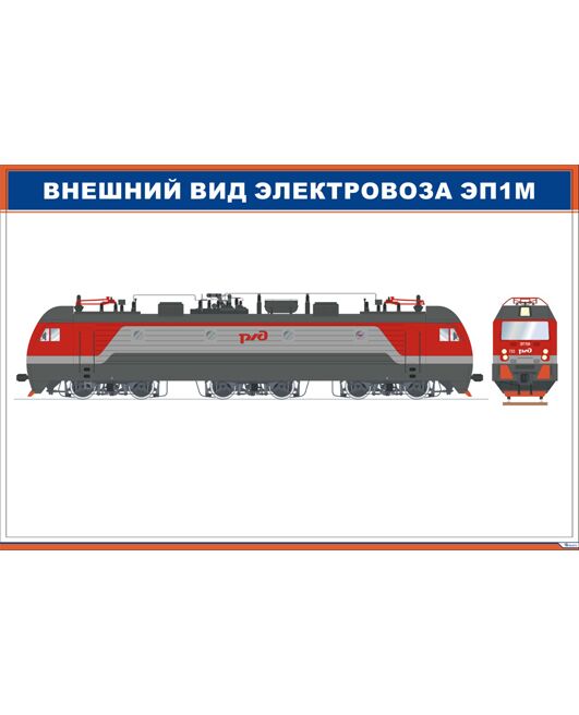 Внешний вид электровоза ЭП1М (900 х 600 мм, ламинированный, с пластиковым профилем и стальным крючком)