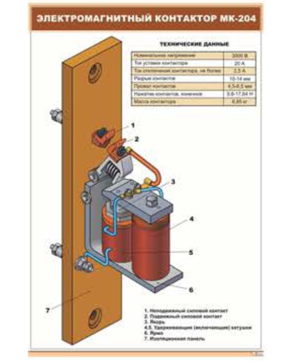 Электромагнитный контактор МК-204 (600 х 900 мм, ламинированный, с пластиковым профилем и стальным крючком)