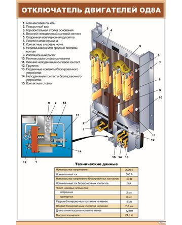 Отключатель двигателей ОД8А (600 х 900 мм, ламинированный, с пластиковым профилем и стальным крючком)
