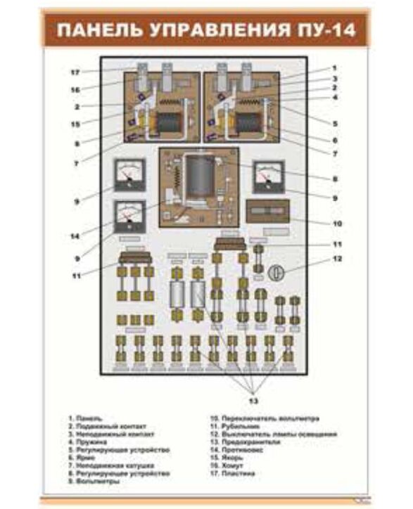 Плакат: Панель управления ПУ-14 (600 х 900 мм, ламинированный, с пластиковым профилем и стальным крючком)