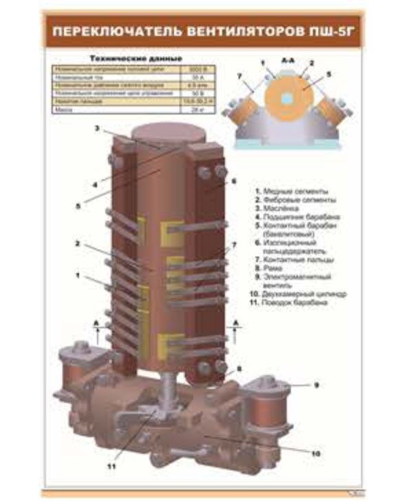 Плакат: Переключатель вентиляторов ПШ-5Г (600 х 900 мм, ламинированный, с пластиковым профилем и стальным крючком)