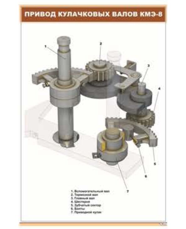 Плакат: Привод кулачковых валов КМЭ-8 (600 х 900 мм, ламинированный, с пластиковым профилем и стальным крючком)