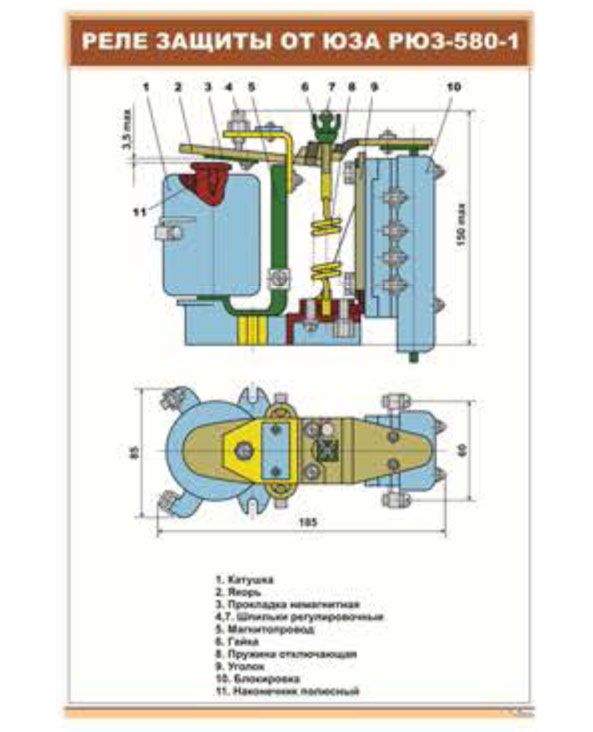 Плакат: Реле защиты от юза РЮЗ-580-1 (600 х 900 мм, ламинированный, с пластиковым профилем и стальным крючком)