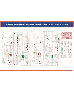 Плакат: Схема высоковольтных цепей электровоза ЧС7 (85Е5) (900 х 600 мм, ламинированный, с пластиковым профилем и стальным крючком)