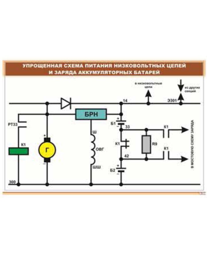 Плакат: Упрощенная схема питания низковольтных цепей и заряда аккумуляторных батарей (600 х 900 мм, ламинированный, с пластиковым профилем и стальным крючком)
