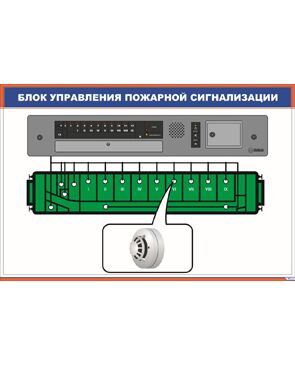 Плакат: Блок управления пожарной сигнализации (900 х 600 мм, ламинированный, с пластиковым профилем и стальным крючком)