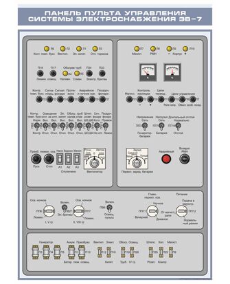 Плакат: Панель пульта управления системы электроснабжения ЭВ-7 (600 х 900 мм, ламинированный, с пластиковым профилем и стальным крючком)