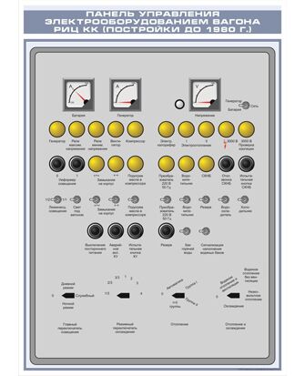 Плакат: Панель управления электрооборудованием вагона РИЦКК (постойки до 1980 г.) (600 х 900 мм, ламинированный, с пластиковым профилем и стальным крючком)