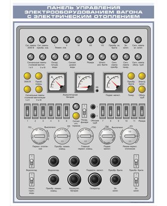 Плакат: Панель управления электрооборудованием вагона с электрическим отоплением (600 х 900 мм, ламинированный, с пластиковым профилем и стальным крючком)