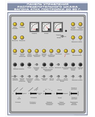 Плакат: Панель управления распределительного шкафа вагона 47КК постройки до 1980 г. (600 х 900 мм, ламинированный, с пластиковым профилем и стальным крючком)