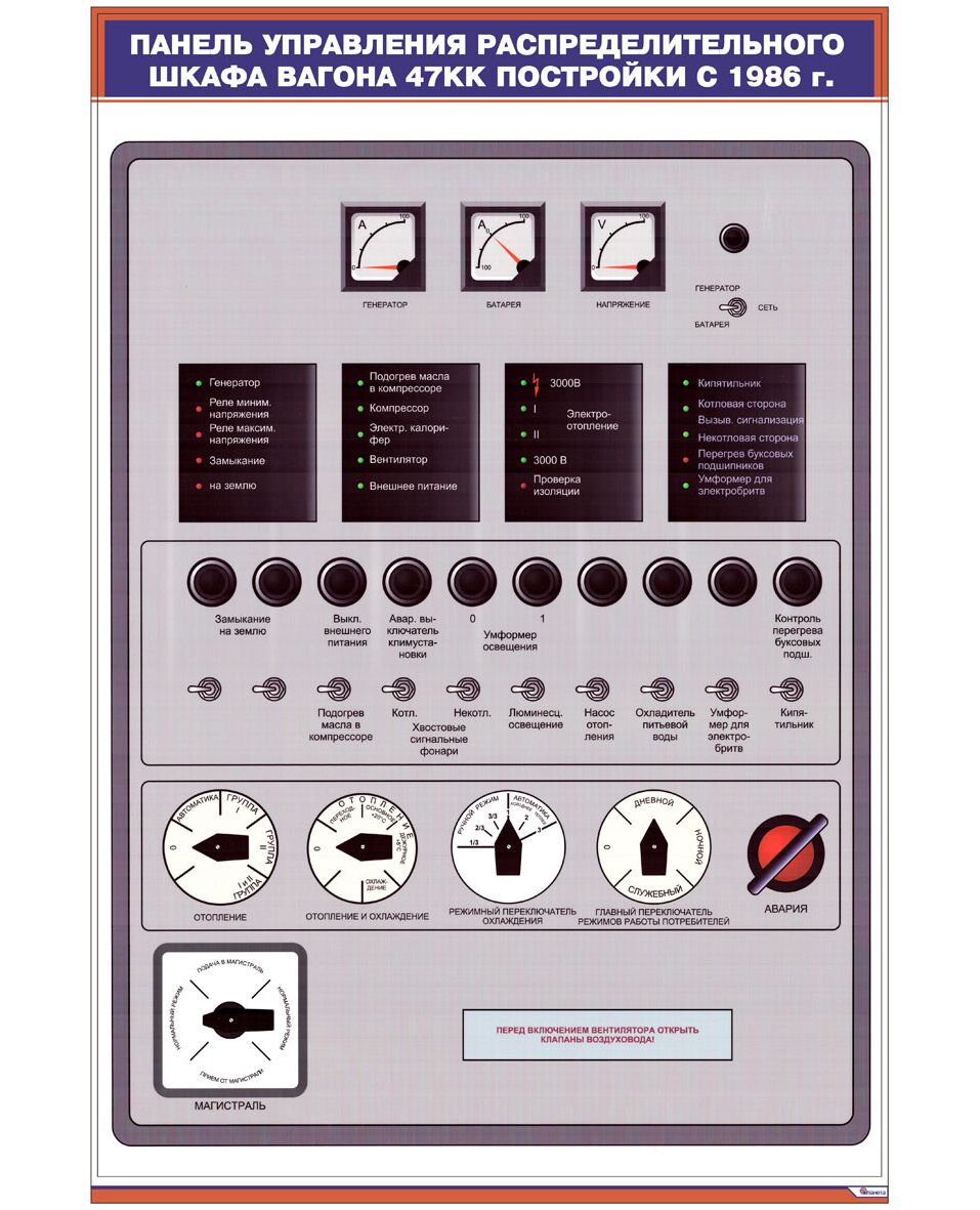 Плакат: Панель управления распределительного шкафа вагона 47КК постройки с 1986 г. (600 х 900 мм, ламинированный, с пластиковым профилем и стальным крючком)