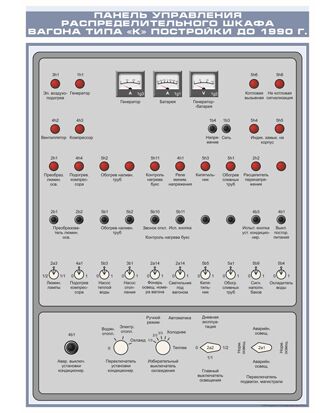 Плакат: Панель управления распределительного шкафа вагона типа "К" постройки до 1990 г. (600 х 900 мм, ламинированный, с пластиковым профилем и стальным крючком)