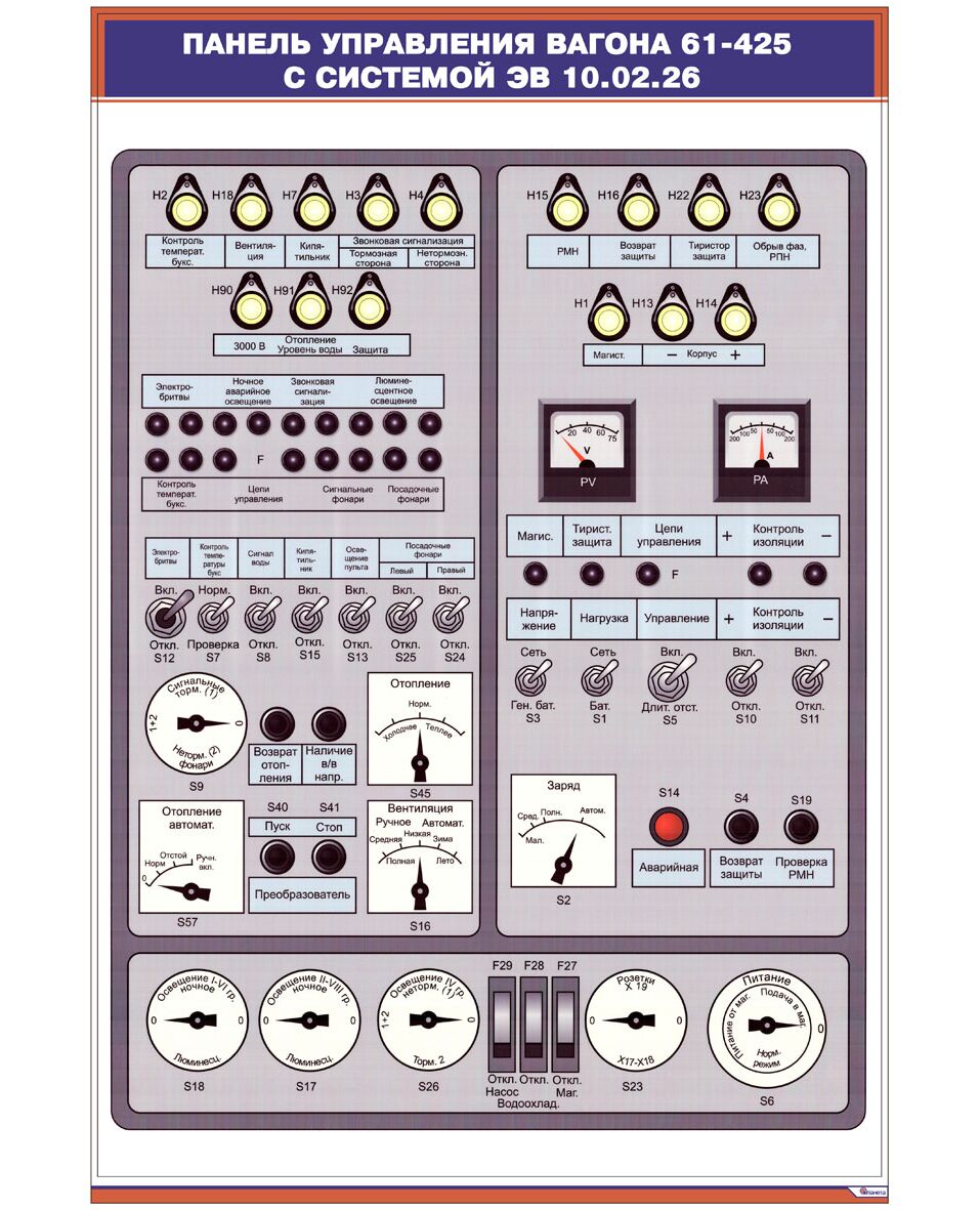 Плакат: Панель управления вагона 61-425 с системой ЭВ 10.02.26 (600 х 900 мм, ламинированный, с пластиковым профилем и стальным крючком)
