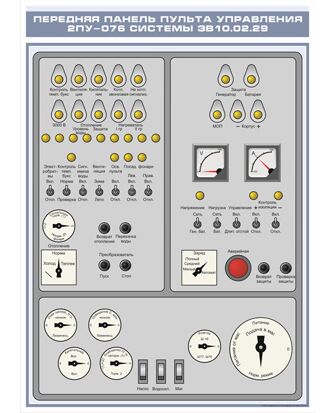 Плакат: Передняя панель пульта управления 2ПУ-076 системы ЭВ10.02.29 (600 х 900 мм, ламинированный, с пластиковым профилем и стальным крючком)