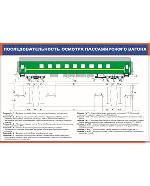 Плакат: Последовательность осмотра пассажирского вагона (900 х 600 мм, ламинированный, с пластиковым профилем и стальным крючком)