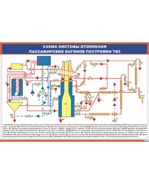 Плакат: Схема системы отопления пассажирских вагонов постройки ТВЗ (900 х 600 мм, ламинированный, с пластиковым профилем и стальным крючком)
