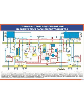 Плакат: Схема системы водоснабжения пассажирских вагонов постройки ТВЗ (900 х 600 мм, ламинированный, с пластиковым профилем и стальным крючком)
