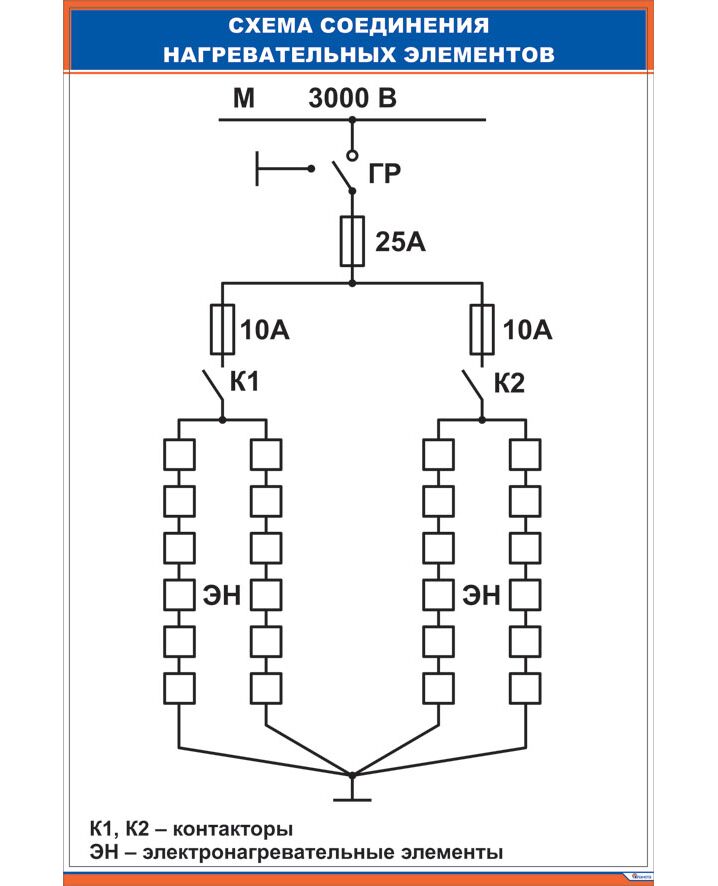 Плакат: Схема соединения нагревательных элементов (600 х 900 мм, ламинированный, с пластиковым профилем и стальным крючком)
