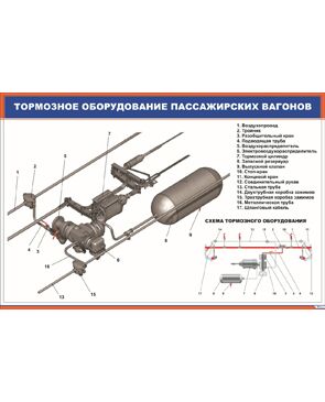 Плакат: Тормозное оборудование пассажирских вагонов (900 х 600 мм, ламинированный, с пластиковым профилем и стальным крючком)