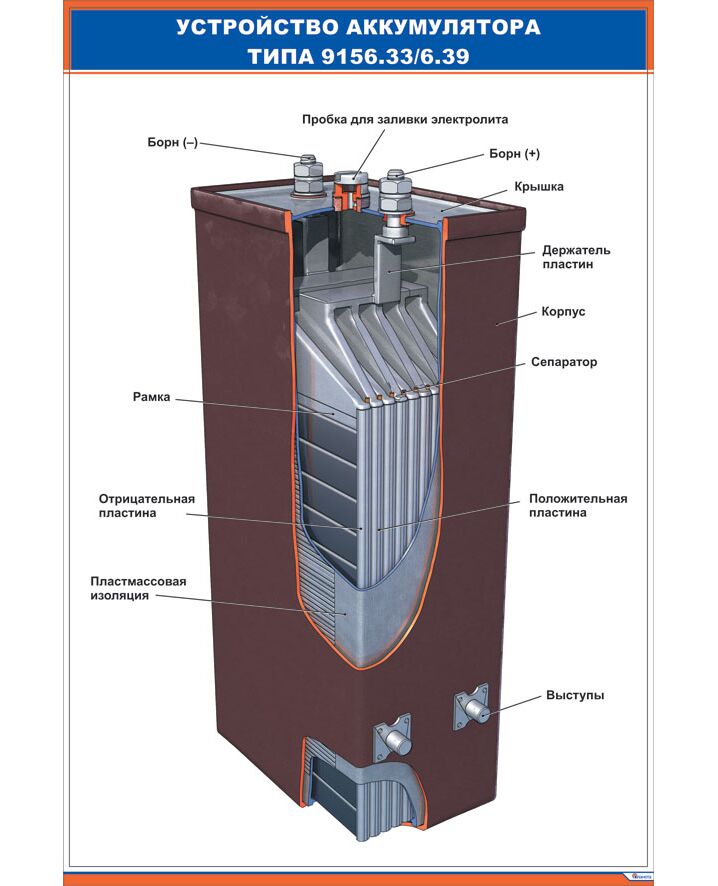 Плакат: Устройство аккумулятора типа 9156.33/6.39 (600 х 900 мм, ламинированный, с пластиковым профилем и стальным крючком)