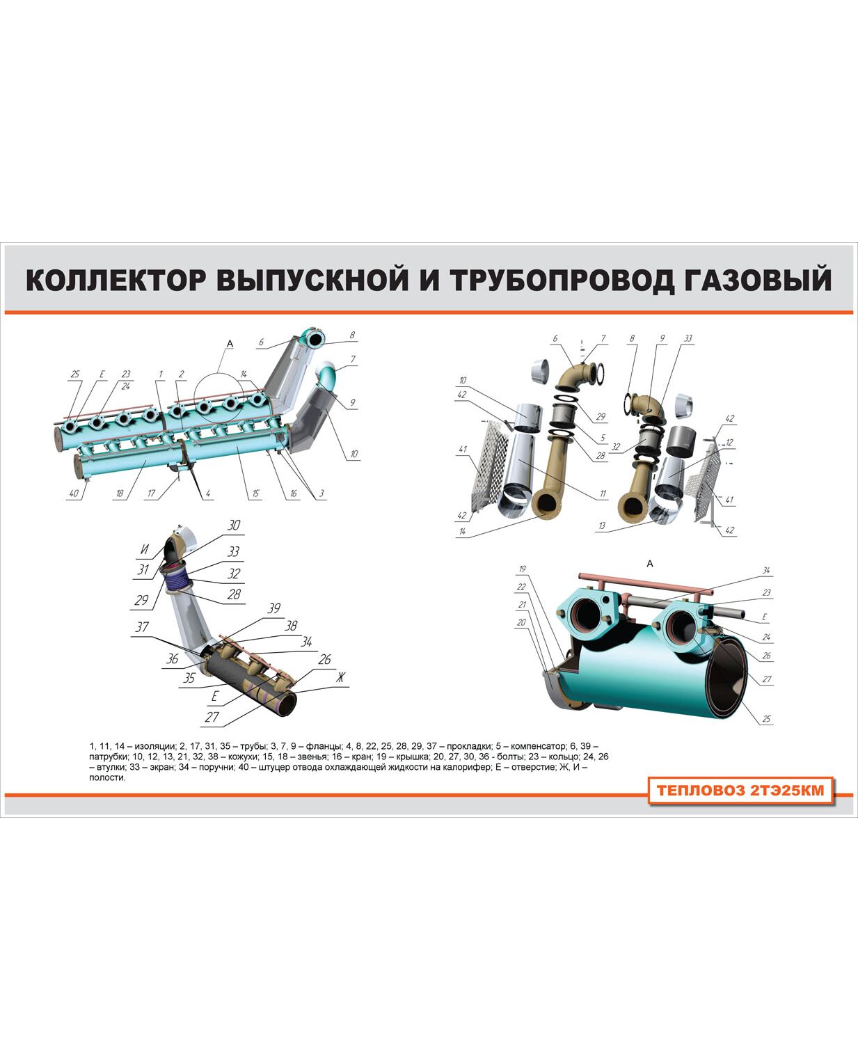 Плакат: Коллектор выпускной и трубопровод газовый (900 х 600 мм, ламинированный с пластиковым профилем и крючком)