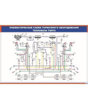 Плакат: Пневматическая схема тормозного оборудования тепловоза ТЭП70 (900 х 600 мм, ламинированный, с пластиковым профилем и стальным крючком)