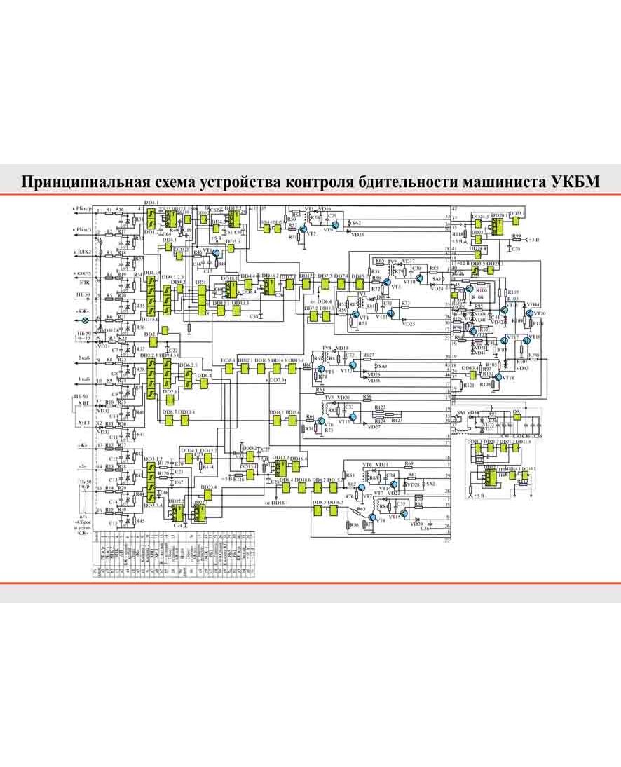 Плакат: Принципиальная схема устройства контроля бдительности машиниста УКБМ, 1 штука, формат А2, ламинированный