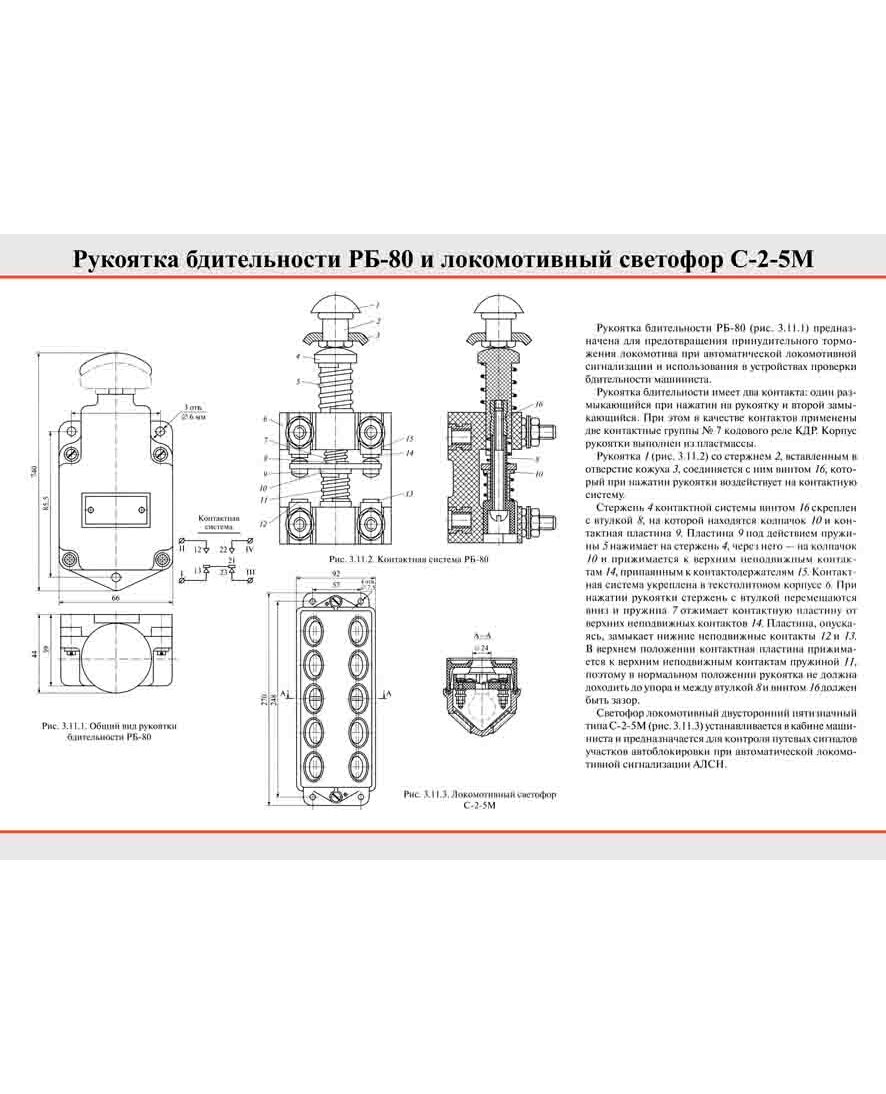 Плакат: Рукоятка бдительности РБ-80 и локомотивный светофор С-2-5М, 1 штука, формат А2, ламинированный