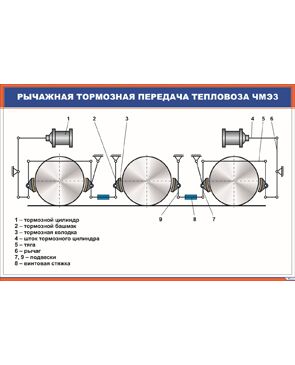 Плакат: Рычажная тормозная передача тепловоза ЧМЭ3 (900 х 600 мм, ламинированный, с пластиковым профилем и стальным крючком)