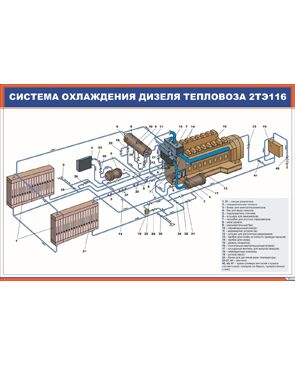 Плакат: Система охлаждения дизеля тепловоза 2ТЭ116 (900 х 600 мм, ламинированный, с пластиковым профилем и стальным крючком)