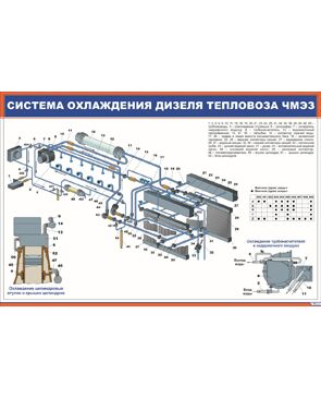 Плакат: Система охлаждения дизеля тепловоза ЧМЭЗ (900 х 600 мм, ламинированный, с пластиковым профилем и стальным крючком)
